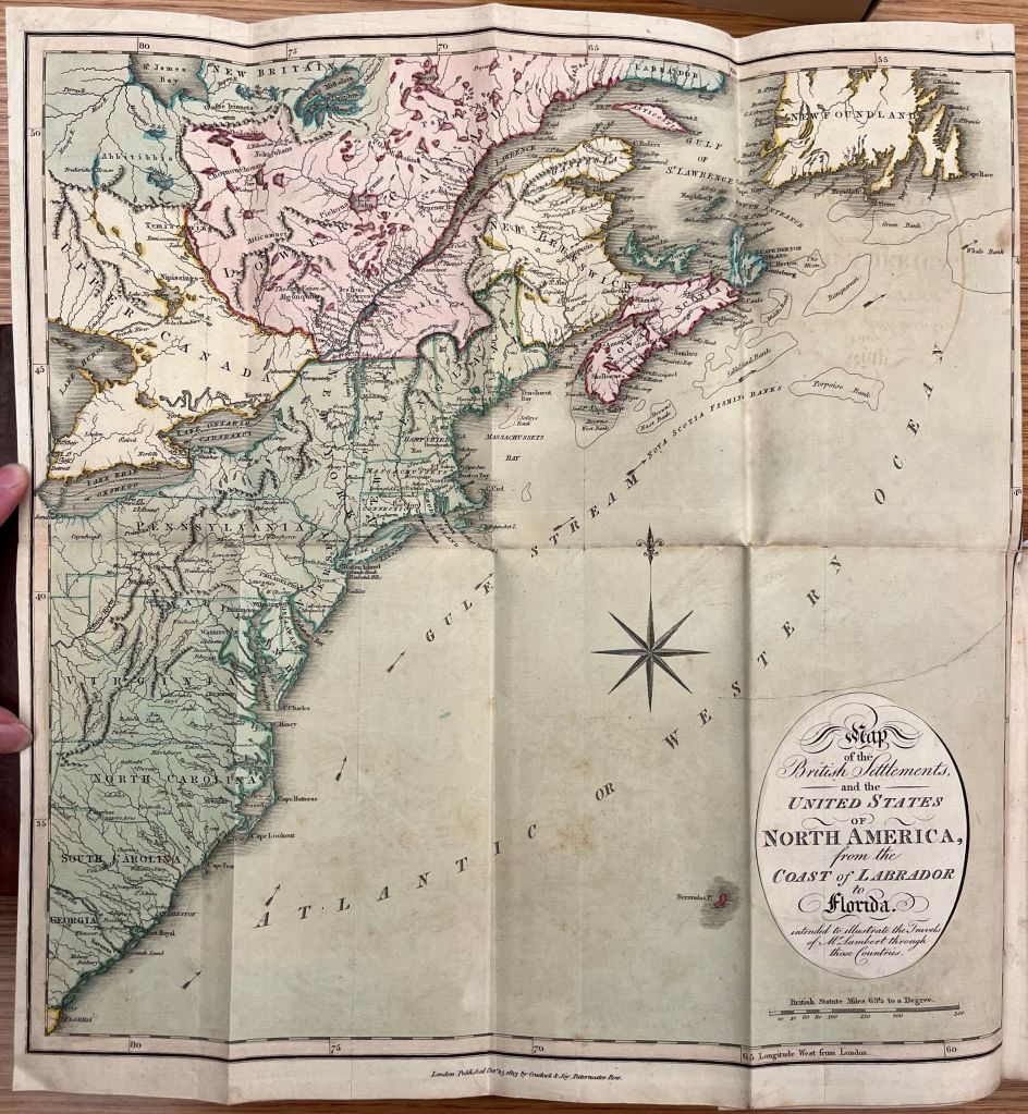 The Daniel and William Constable Papers consists of two letters, two journals by William: 1806, July 1806 to January 1807; three by Daniel: March 1798 to September 1806, September 1806 to June 1807, June 1807 to March 1808; a miscellany book by Thomas Rickman; and Gilbert Imlay’s guide book. The museum also has two original watercolors painted by William: The Great Falls of the Mohawk and View of the Mississippi River above Natchez, 1807.